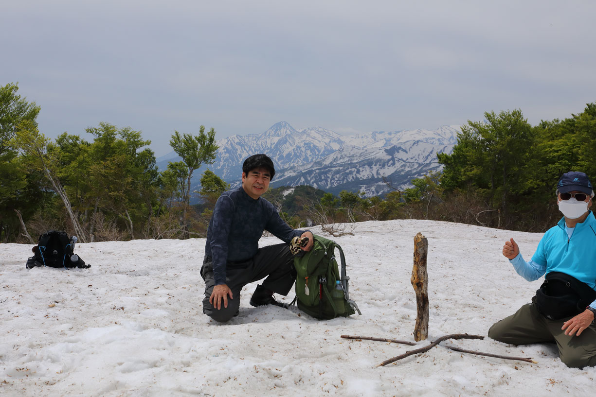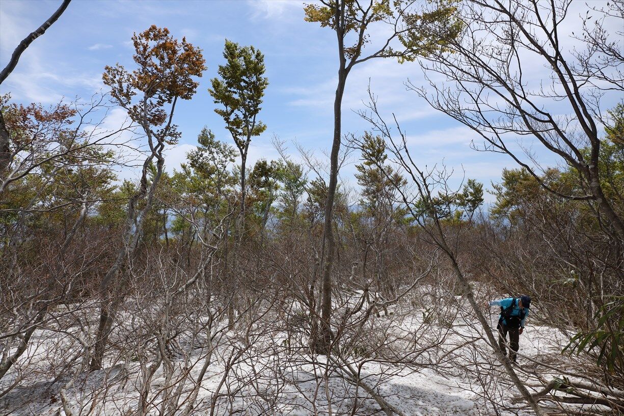 予想外に残雪が多く、藪を避けたりルート選択などで四苦八苦の爺!